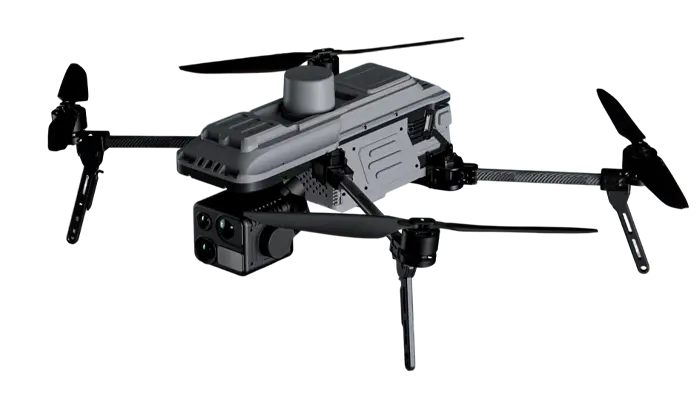 Payload-ready aerial systems integrating thermal imaging, laser ranging, and dual visible-light gimbals.