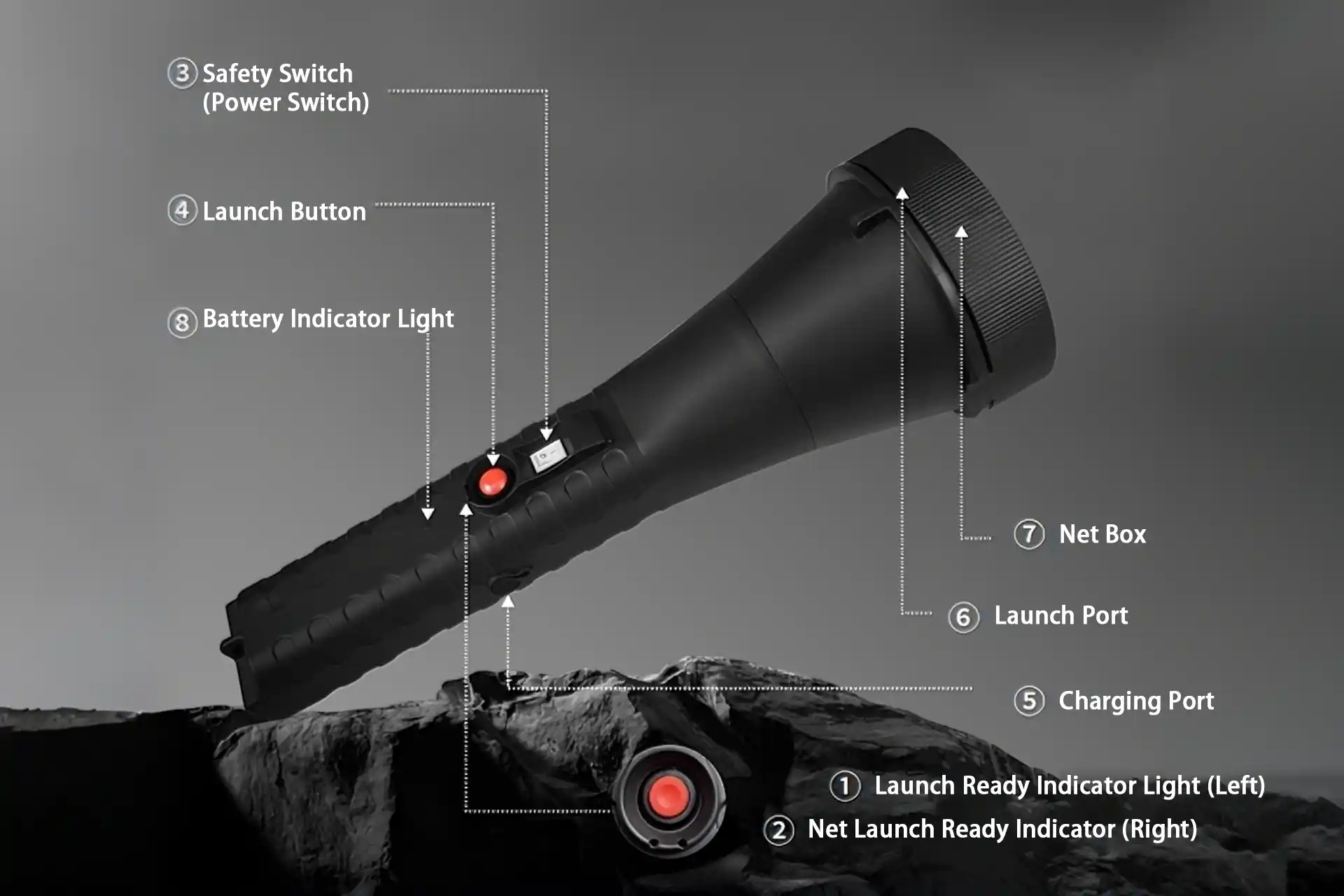 | Power Source | The device is powered by a rechargeable battery, which also serves as the energy source for launching. When fully charged, it supports at least 50 consecutive launches, ensuring operational continuity and high efficiency. |
